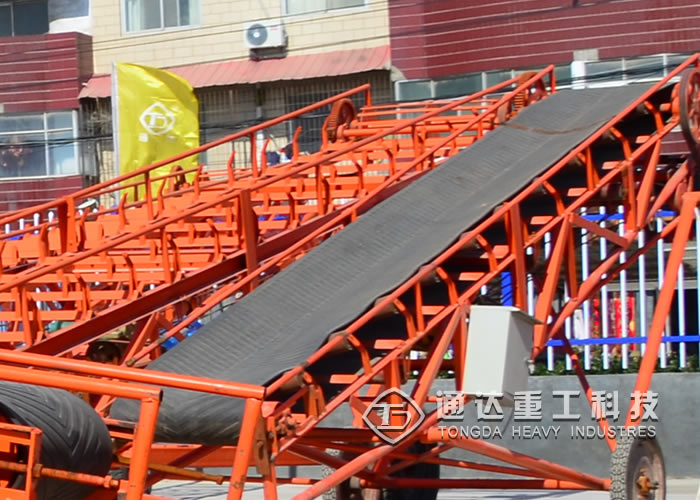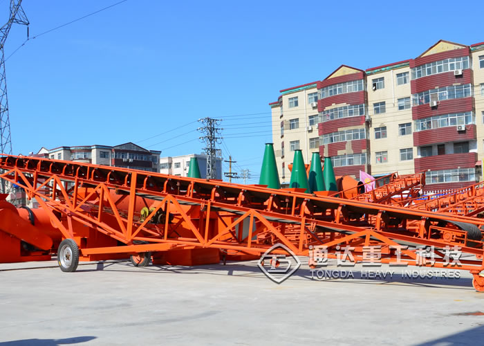 移動皮帶輸送機(jī)是一種工效高,使用,機(jī)動性好的連續(xù)輸送裝卸設(shè)備。主要用于裝卸地點經(jīng)常變更動的場所,如:港口、碼頭、車站、煤場、倉庫、建筑工地、沙石料場、農(nóng)場等,用來短途運(yùn)輸及裝卸散料或單件重量100公斤以下的成件物品